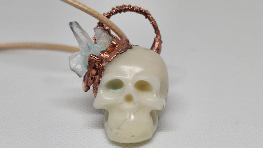 "Alchemist SKULLpture" Copper & Quartz Crystal Electroformed Skull Pendant