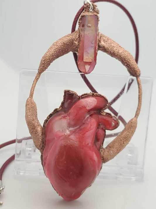 "You Have My Heart" Anatomical Heart & Aura Quartz Crystal Necklace